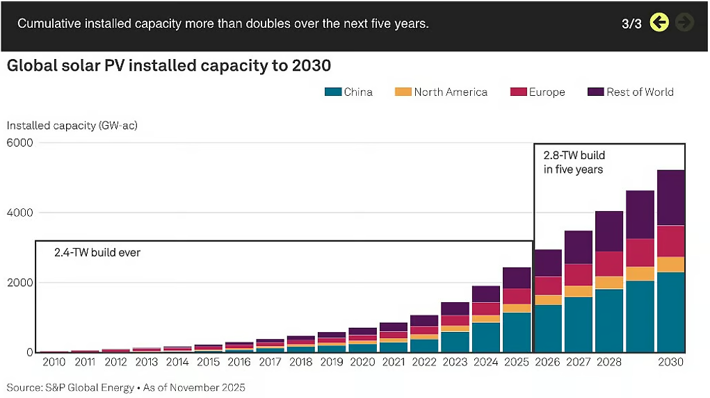 Annual global PV installations are expected to exceed 500 GW, reflecting robust long-term demand